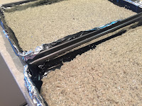 4.  Pour in the wet mix & spread. The thinner the mix the better. Score the cracker mix with a sharp knife.