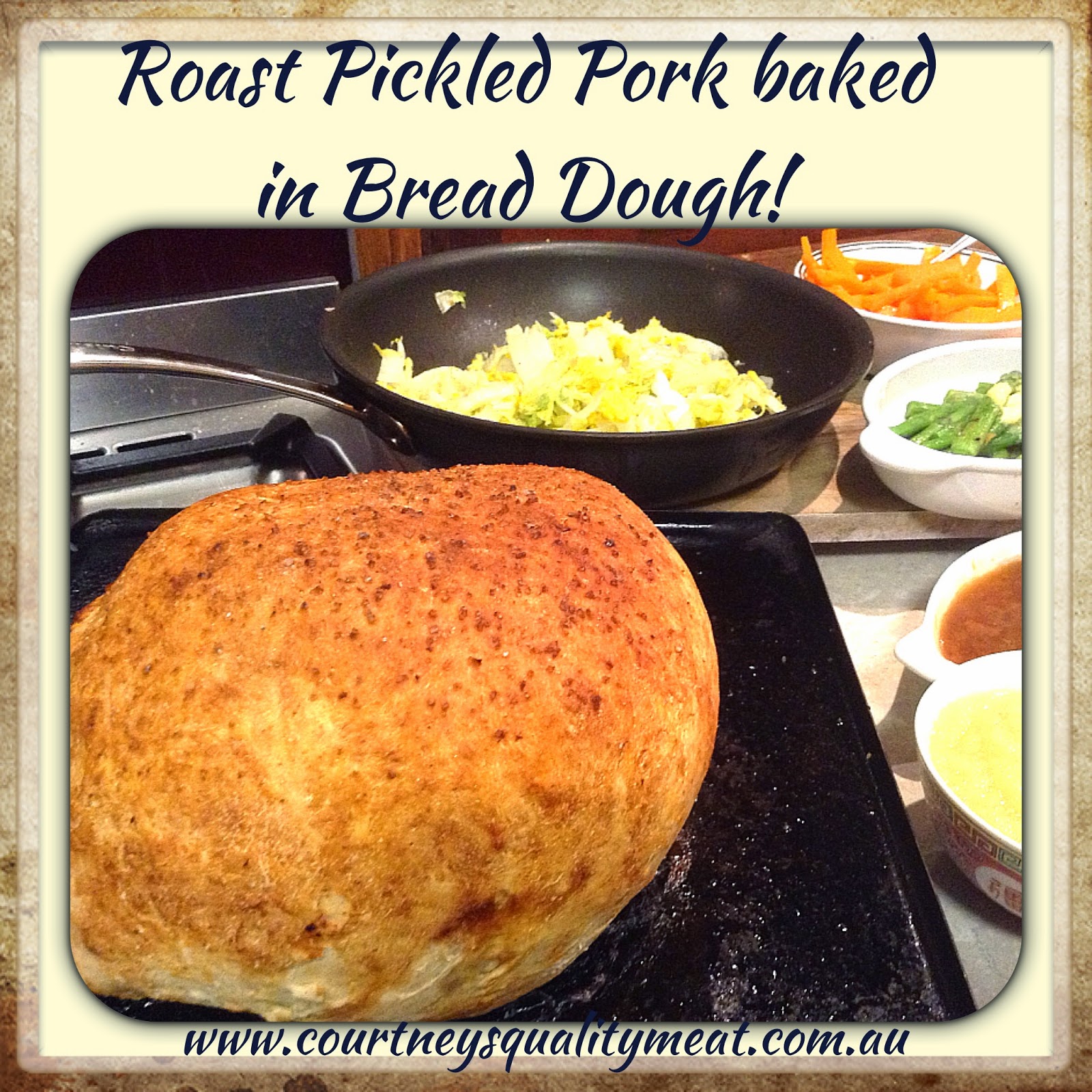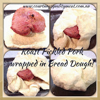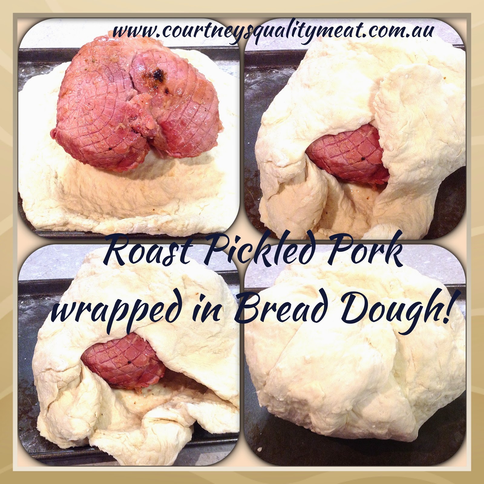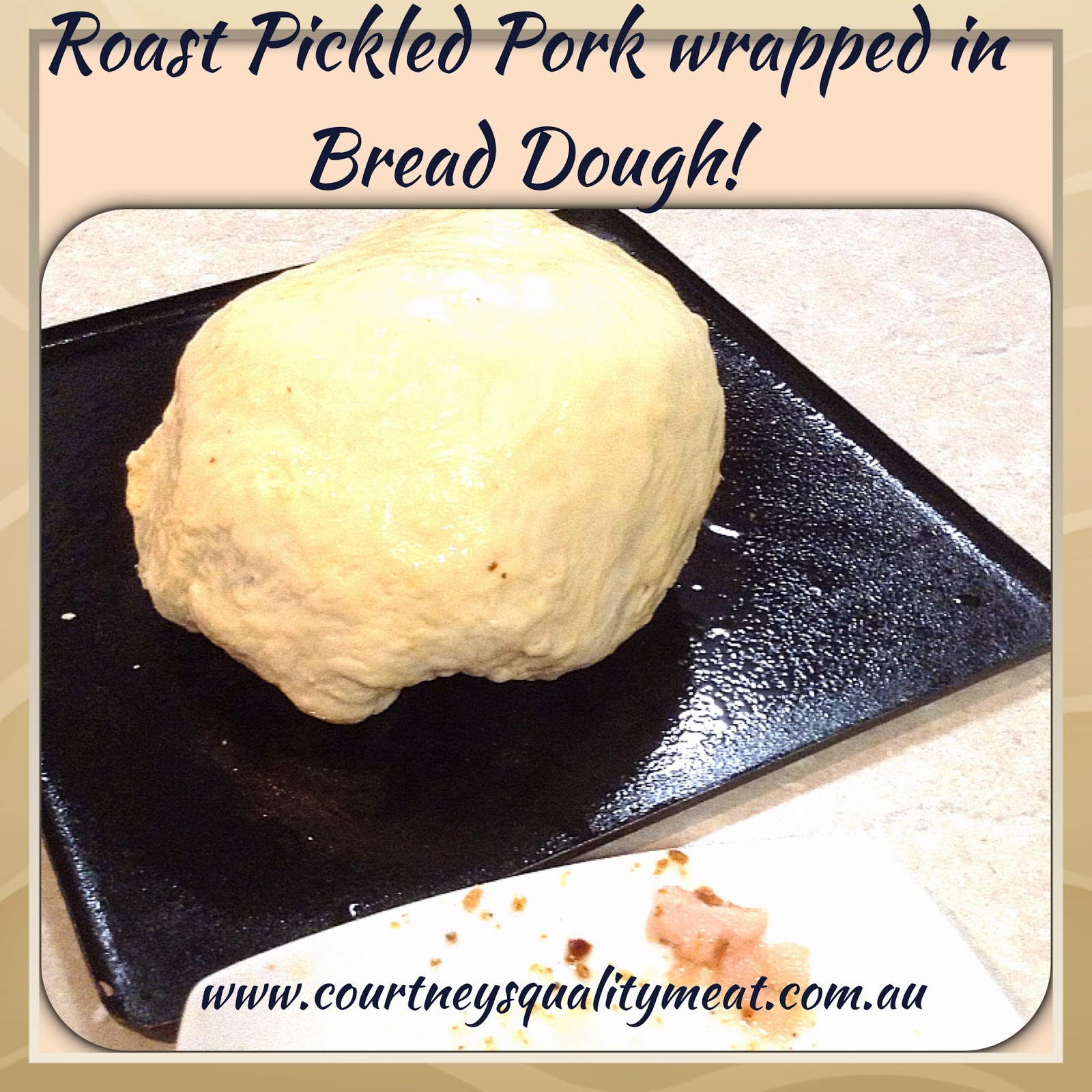 - When the meat is cooked, take it out & let it cool. Make up your bread dough, ready to wrap pork in & bake again.