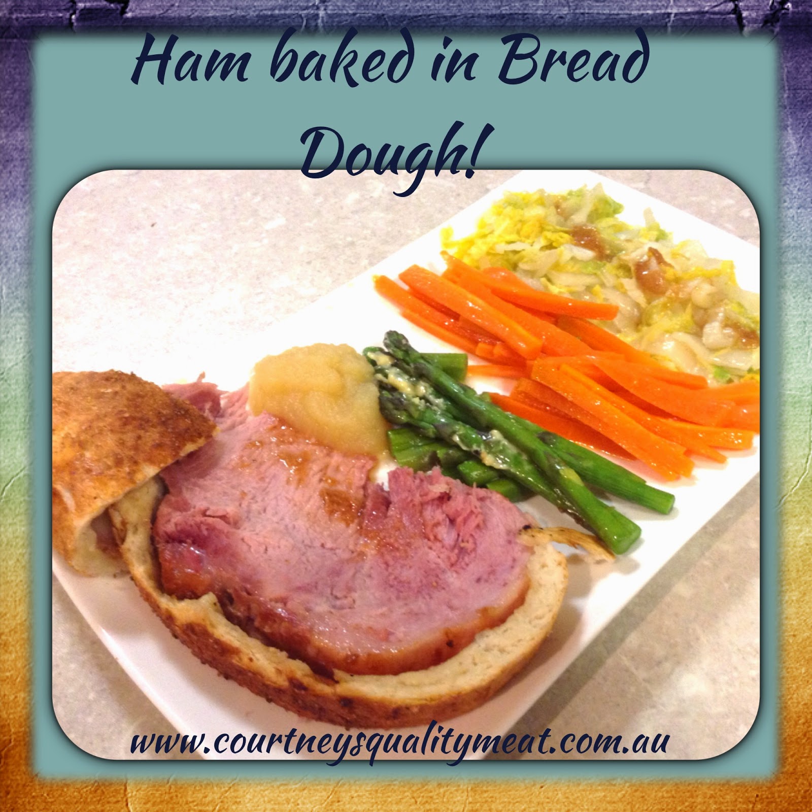 I'm not really sure what this recipe is called, but after a conversation with Steve, about Beggars'Chicken, (which is a fresh chicken wrapped in Bread Dough & baked), Stephen told me about his Dad, Toby cooking Leg Hams in the Bakery Ovens at Christmas. Some were wrapped in brown paper & other Leg Hams were wrapped in bread dough.