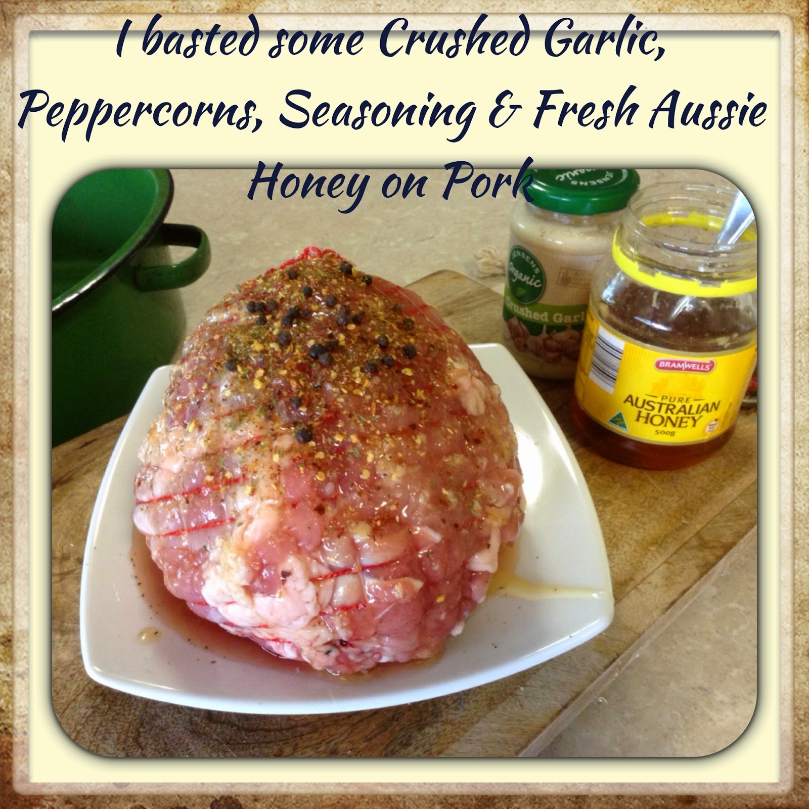 - Rub garlic, crushed peppercorns & drizzle honey over Pork.